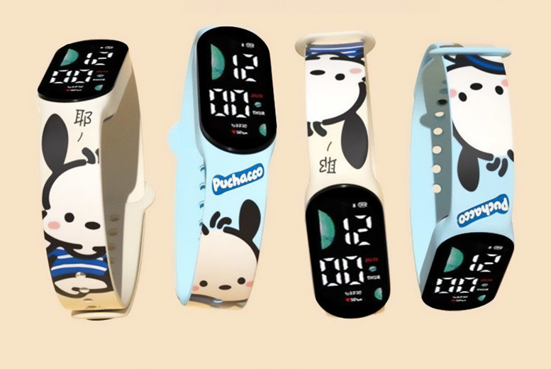 11 options: This watch is available in beige pacha dog, blue pacha dog, love english, faint sunset, under the moon Van Gogh, black and white luffy, star delu family, starry sky flower, first flight, geng gui, and Van Gogh starry sky. Display type: The display features numbers in digital format to enhance the ease of reading and understanding time. Style: The watch features a playful and engaging cartoon style, perfect for young wearers. Applicable audience: Designed with students in mind, this watch caters to the youthful and vibrant preferences of young learners. Special features: This watch includes time and calendar functions to provide practicality and convenience for daily use.